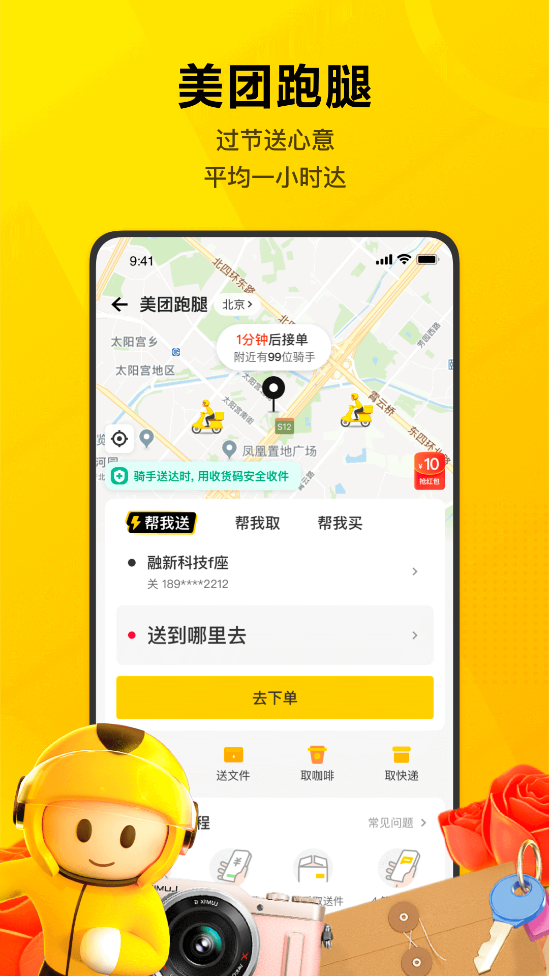 - 음식 배달 (美团外卖): 중국 내 가장 큰 음식 배달 서비스 중 하나로, 다양한 식당의 음식을 주문하여 신속하게 배달받을 수 있습니다. 실시간 배달 추적 기능을 제공하여 사용자 편의성을 높입니다.